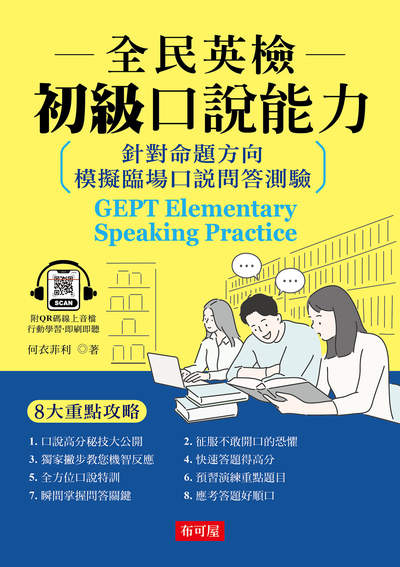 有據於此,為服務廣大讀者群,強化讀者的英語能力,本公司特聘專業外籍老師,傳授GEPT英語口說能力搶分秘笈、讀者還可以用書搭配線上MP3,多練聽力,本書絕對是您GEPT英文口說秘笈。
